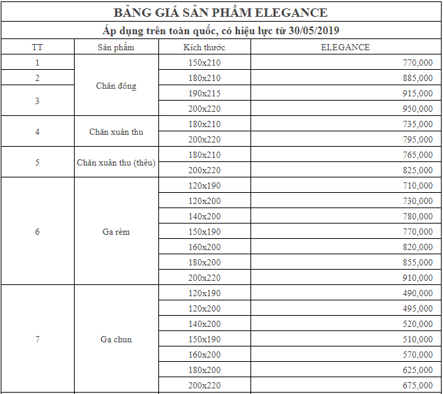 Một số thông tin trên đây liên quan đến bảng giá chăn ga gối Sông Hồng Elegance mới nhất và chất lượng nhất. Tùy thuộc vào nhu cầu bạn có thể chọn mẫu mã, kiểu dáng dành cho mình.