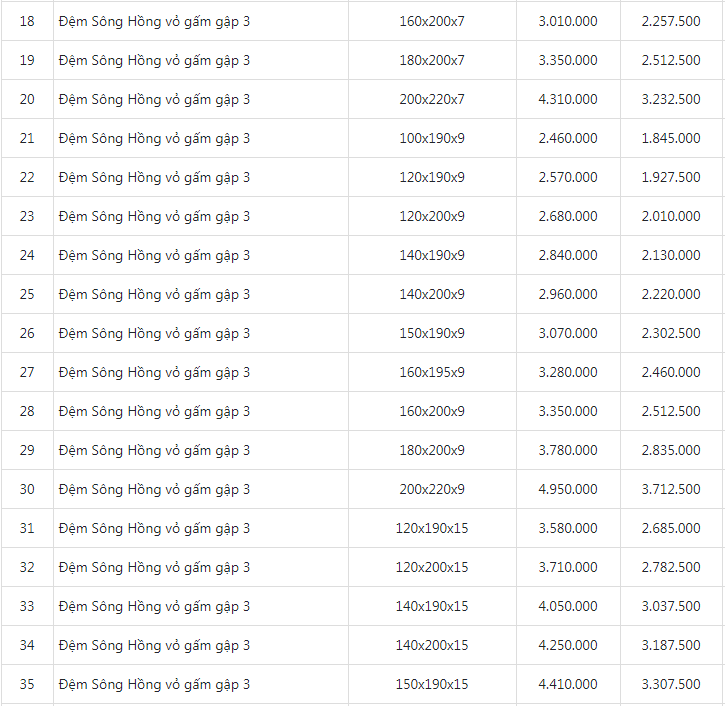 Bảng giá đệm bông ép Sông Hồng vỏ gấp gập 3
