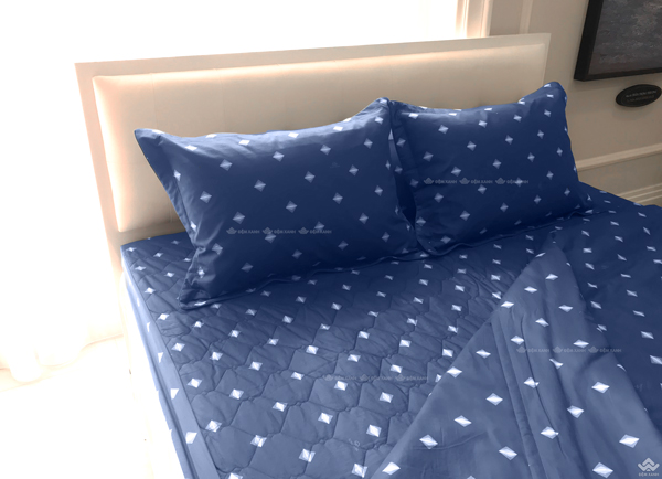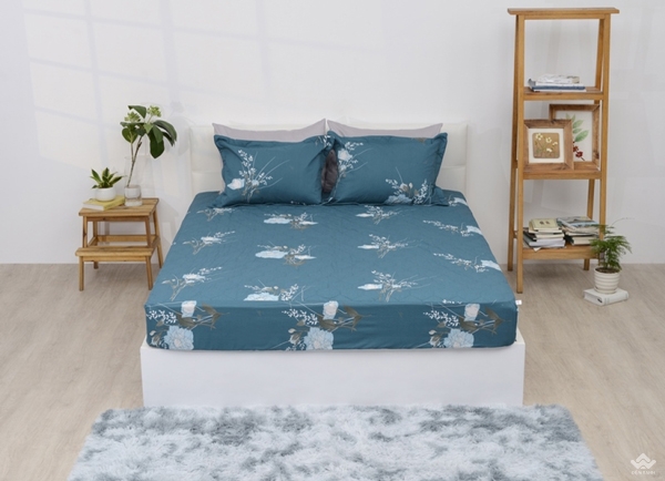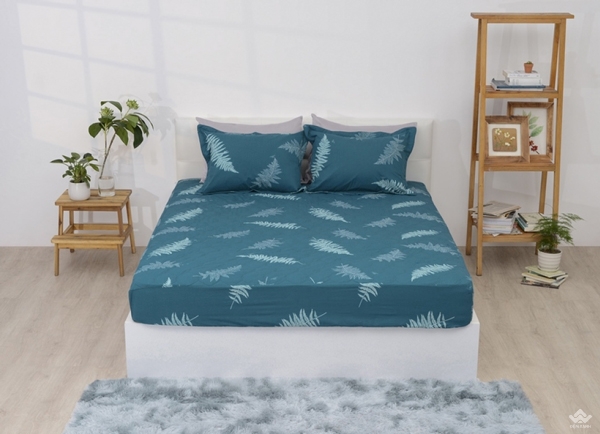 - Bộ ga gối khoác lên mình sắc màu lạnh, tạo chiều sâu cho không gian. Họa tiết của sản phẩm cũng nhẹ nhàng, lịch sự, phù hợp với nhiều không gian.