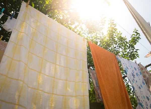 - Phơi chăn ga : Dù cotton là loại vải thoáng khí, nhanh khô nhưng dưới tiết trời có độ ẩm cao thì chất liệu này lại dễ dàng hấp thụ hơi ẩm dẫn đến ẩm mốc, mùi hôi khó chịu. Chăn ga gối của trẻ thường sử dụng các loại vải thông thoáng, khô nhanh nên giai đoạn này không tốn nhiều thời gian nhưng cần cẩn thận vào những ngày mưa ẩm để tránh vi khuẩn sinh sôi trong chăn ga gối của bé.