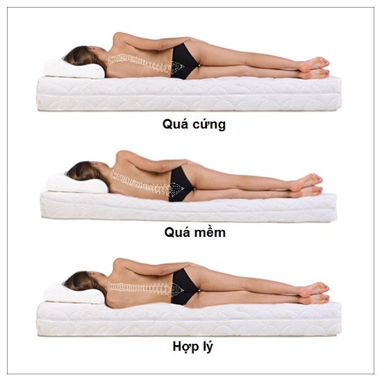 Ngược lại, nằm sấp là vị trí tồi tệ nhất. Trọng lượng ở hông và bụng kéo cột sống xuống. Đệm không đủ hỗ trợ sẽ làm hông lún sâu và khiến bạn đau lưng dưới.