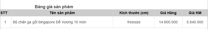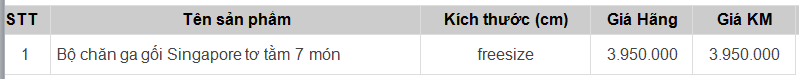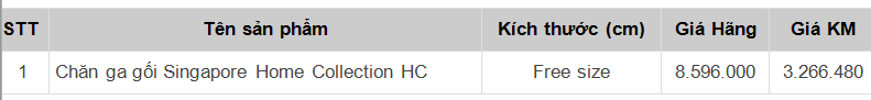 ==> Xem thêm : Chăn ga gối Singapore Đế Vương 10 món