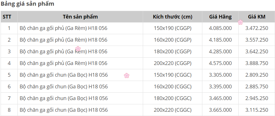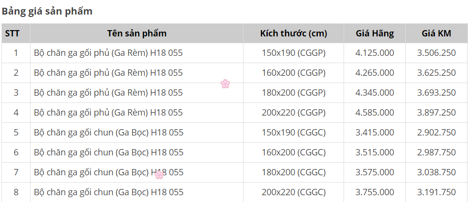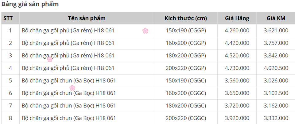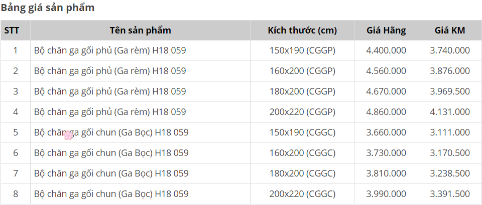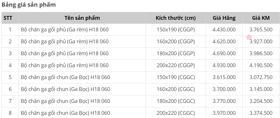 Kết cấu bộ chăn ga gối Sông Hồng Home