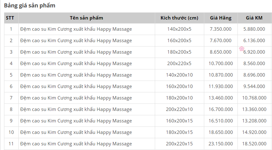 Đệm cao su xuất khẩu Kim Cương Happy Massage lõi màu trắng