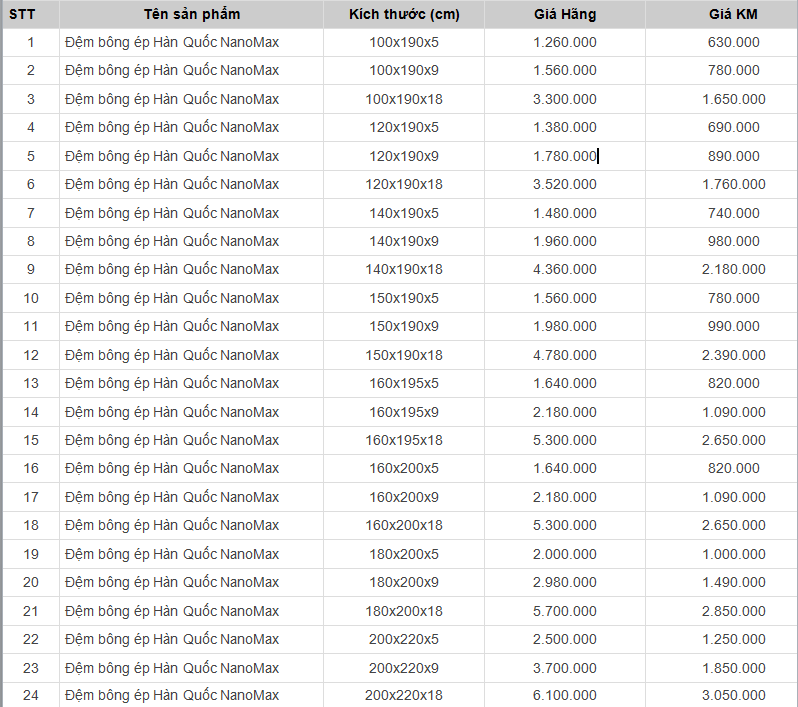 - Đệm Nanomax được nhà cung cấp hỗ trợ bán ra thị trường với mức chiết khấu tới 60% phù hợp với tất cả nhu cầu người tiêu dùng. Là sản phẩm bán chạy nhất thị trường đang được rất nhiều người tiêu dùng ưa chuộng và lựa chọn