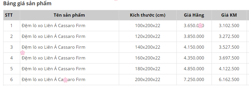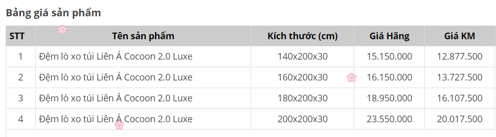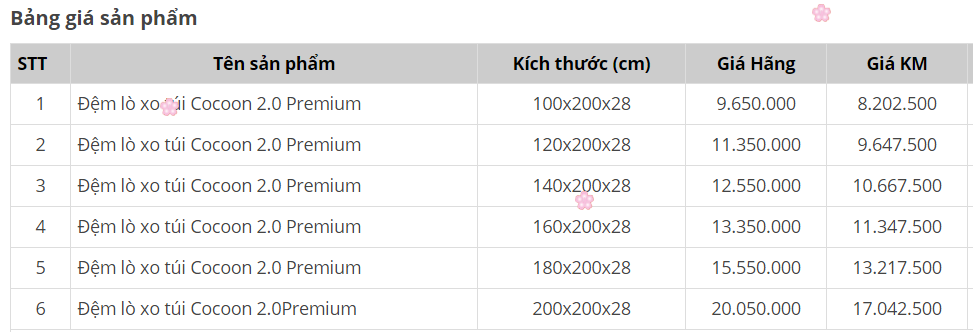 - Khả năng thoáng khí tốt nhờ cấu trúc chân đệm mở giúp không giữ hơi nóng lại trong nệm.