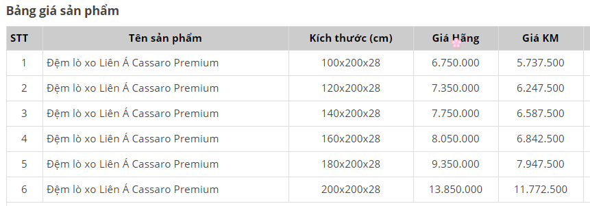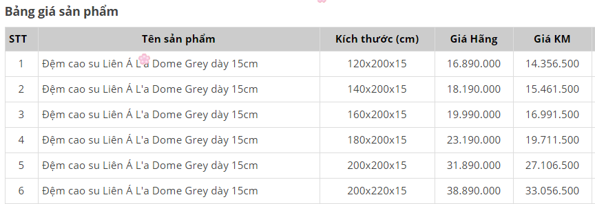 - Các kích thước đệm đa dạng (kích thước đệm cho giường đơn và giường đôi) với độ dày 15cm tận hưởng sự êm ái, thoáng mát khi sử dụng.