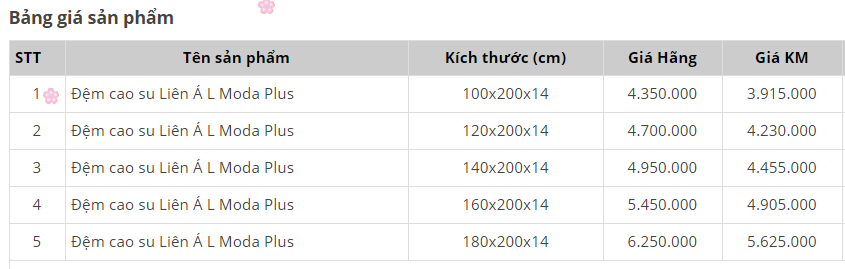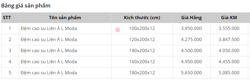 - Đệm L’ Moda đem lại cảm giác êm ái và thoải mái như đang sử dụng đệm cao su thuần khiết với một mức giá hoàn toàn phù hợp không quá đắt đỏ như sản phẩm đệm cao su 100%.