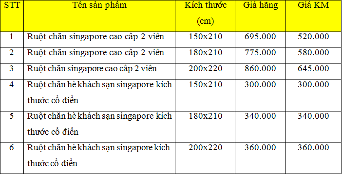 - Ruột chăn hè singapore có 2 loại : ruột chăn hè singapore cao cấp 2 viền và ruột chăn hè khách sạn kích thước cổ điển