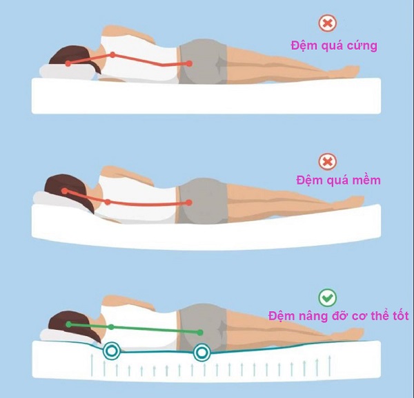 - Hỗ trợ bảo vệ cột sống: Các dòng đệm của Sông Hồng đều độ cứng vừa phải giúp giảm đau nhức vai do nằm sai tư thế. Đồng thời, độ cứng chuẩn khoa học của đệm cũng là chất xúc tác làm giảm thiểu nguy cơ võng cột sống.