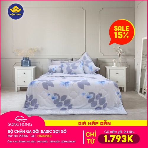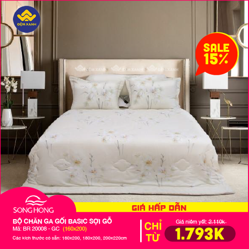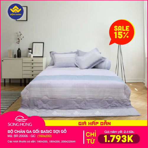 45. Bộ chăn ga gối Sông hồng Basic sợi gỗ BR2008(Ga chun)