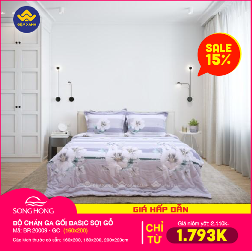31.Bộ chăn ga gối Sông hồng Basic Cotton BC20001(Ga chun)