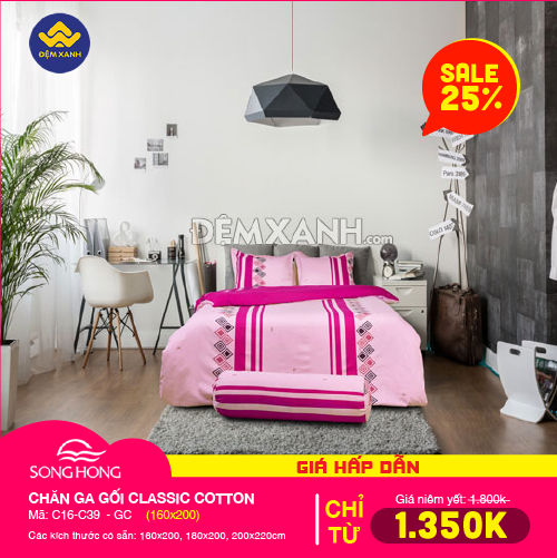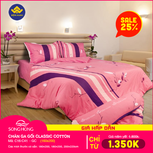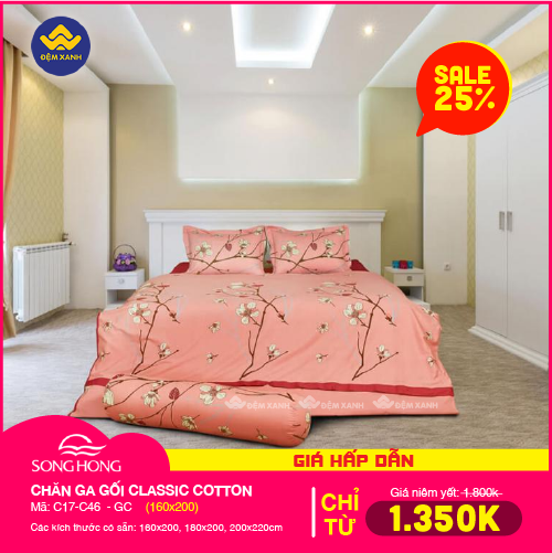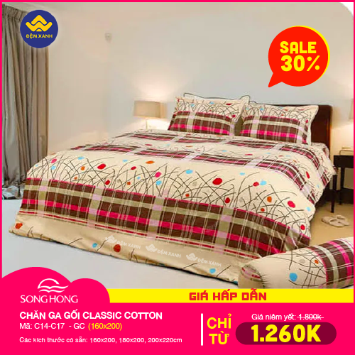 47. Bộ chăn ga gối Sông hồng Classic C14C17(Ga chun)