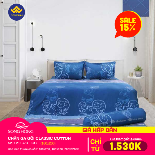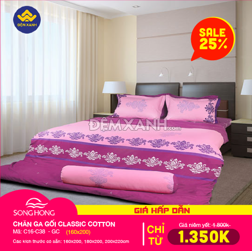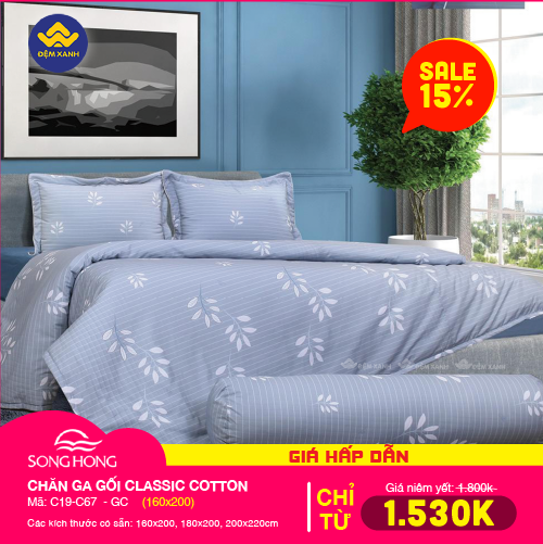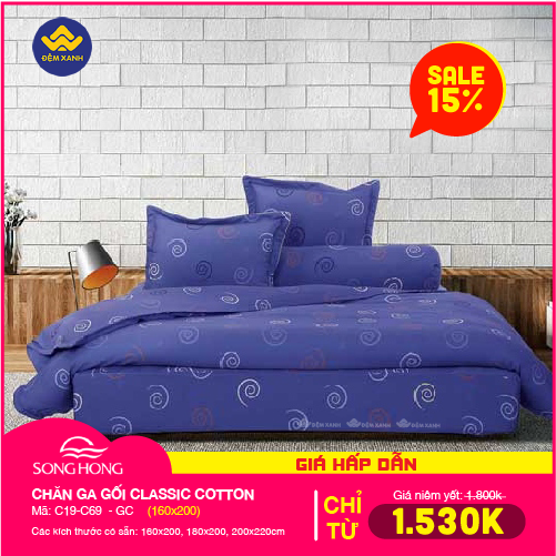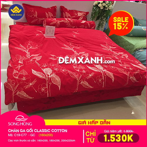 61. Bộ chăn ga gối Sông hồng Classic C19C77( Ga chun)