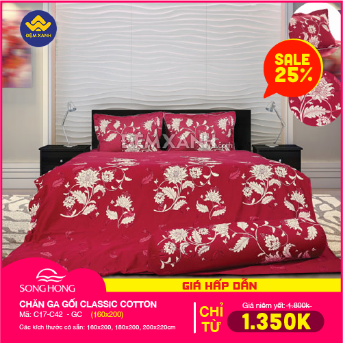 52. Bộ chăn ga gối Sông hồng Classic C17C42(Ga chun)