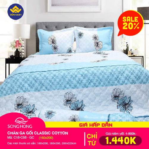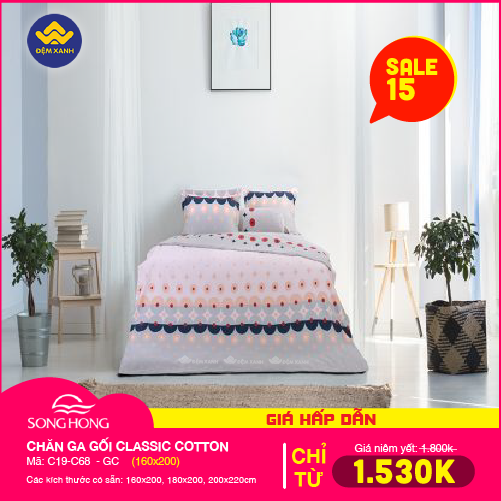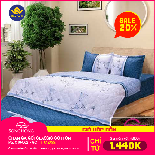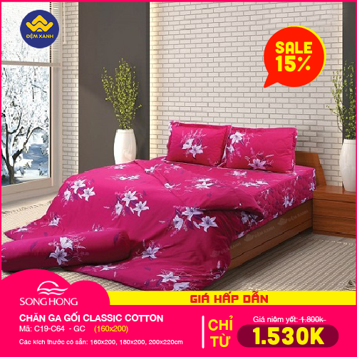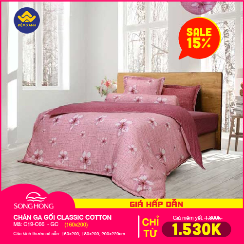 55. Bộ chăn ga gối Sông hồng Classic C19C64( Ga chun)