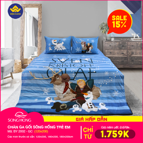 62. Bộ chăn ga gối Sông hồng trẻ em Youth BY2001(Ga chun)