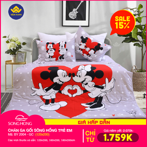 69. Bộ chăn ga gối Sông hồng Disney DN1806 chất liệu 100% cotton(Ga chun)