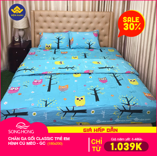 73. Bộ chăn ga gối Sông hồng hình cú mèo(Ga chun)