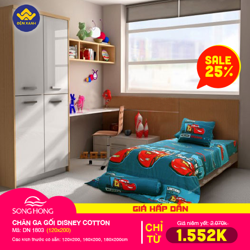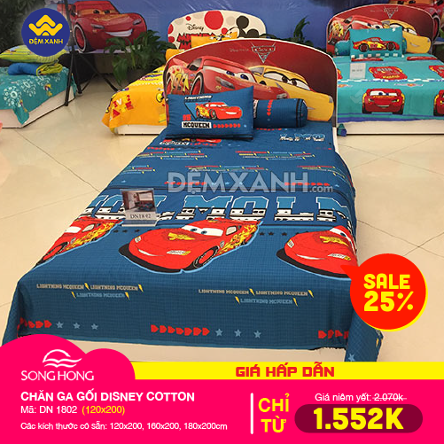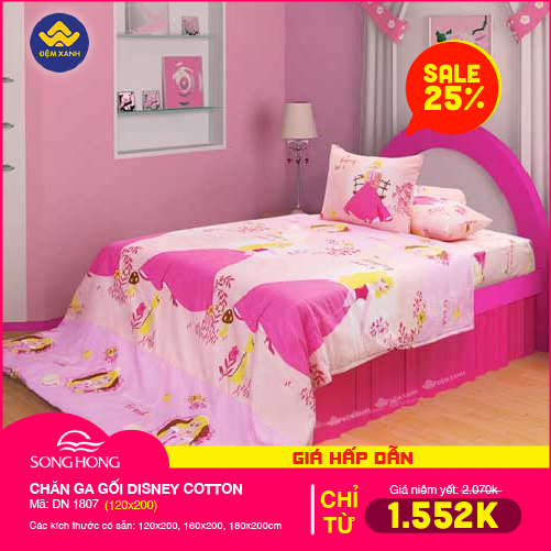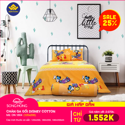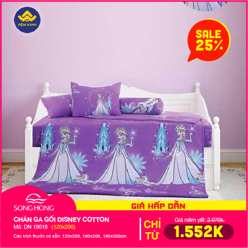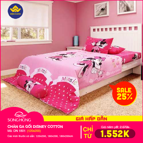 70. Bộ chăn ga gối Sông hồng Disney DN1807 chất liệu 100% cotton(Ga chun)