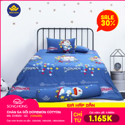 72. Bộ chăn ga gối Sông hồng Doreamon D18020 chất liệu cotton( Ga chun)
