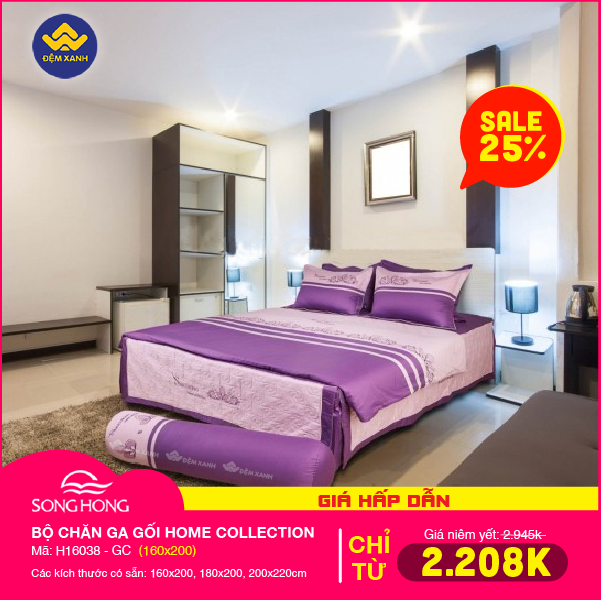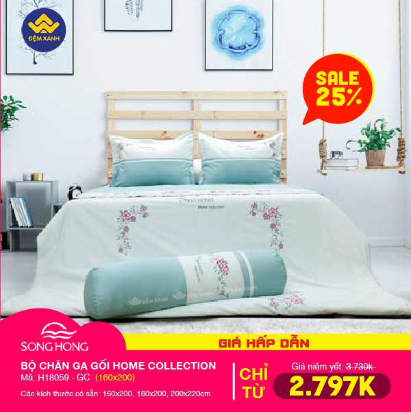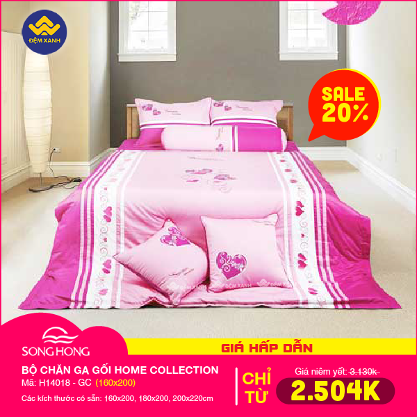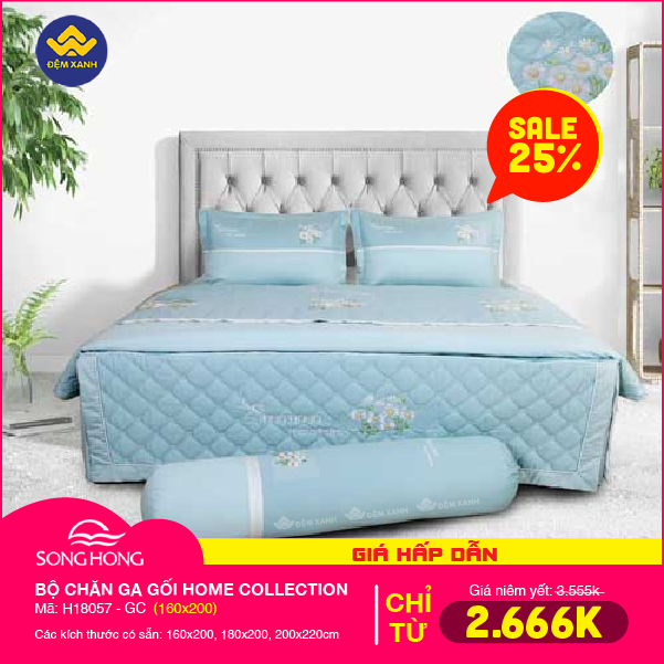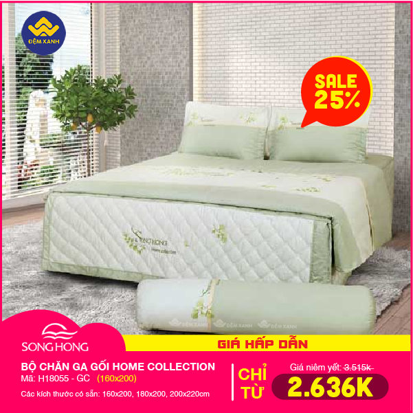 9.Bộ chăn ga gối Sông hồng Home H14018(Ga chun)