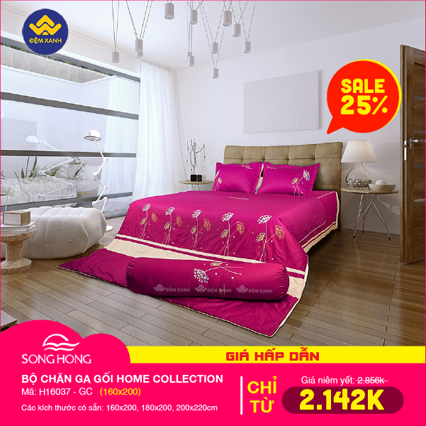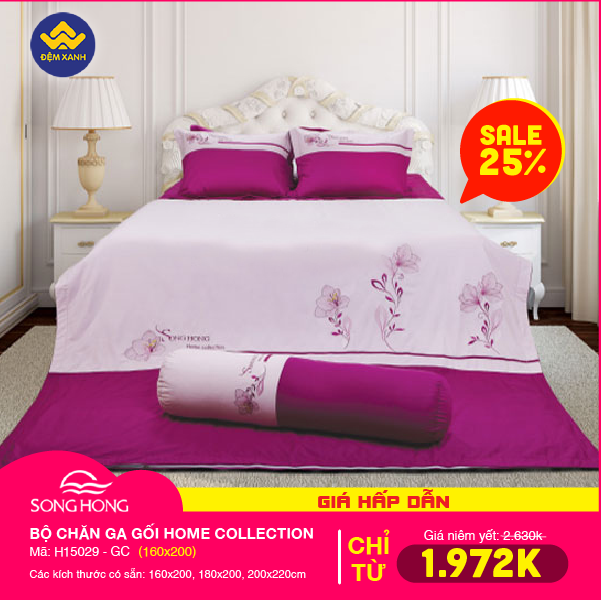 25. Bộ chăn ga gối Sông hồng Home H19062(Ga chun)