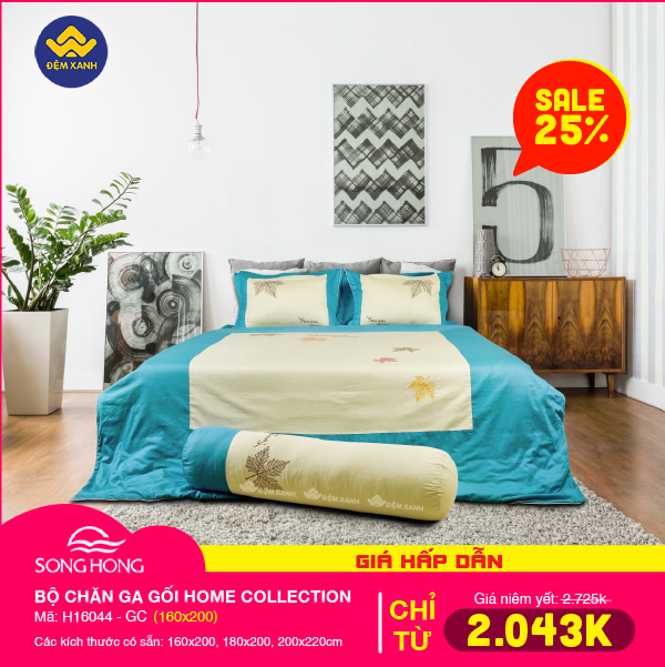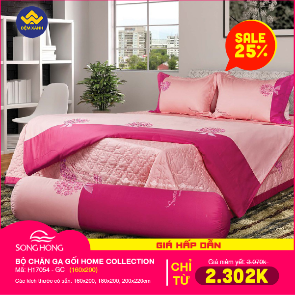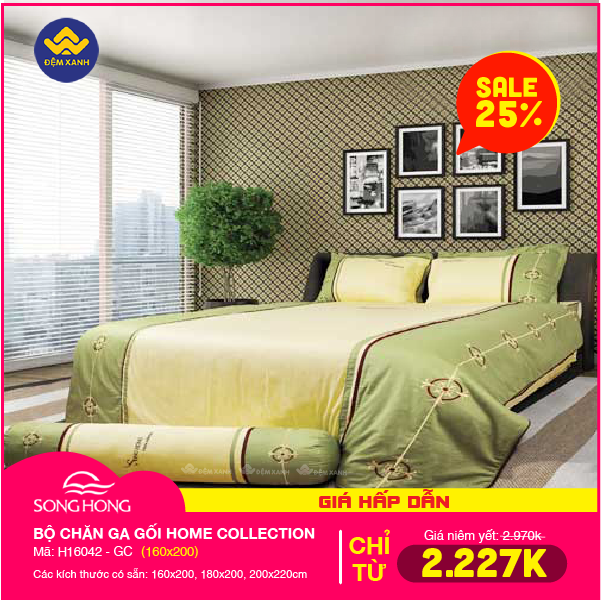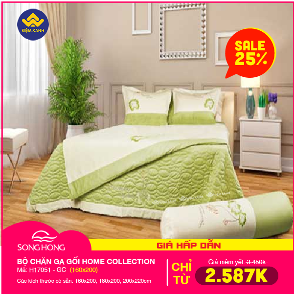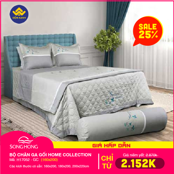 16.Bộ chăn ga gối Sông hồng Home H17051(Ga chun)
