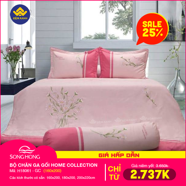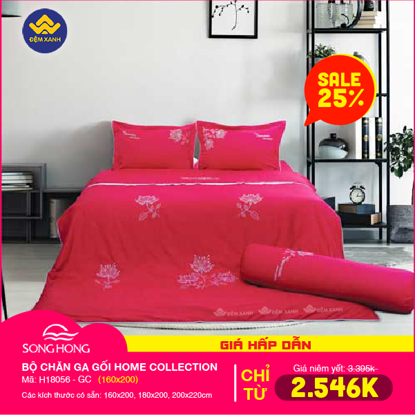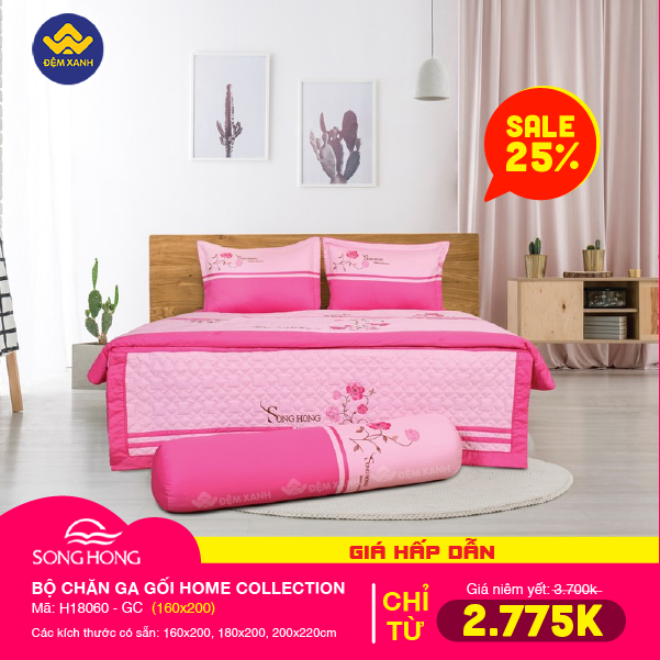 24. Bộ chăn ga gối Sông hồng Home H18061(Ga chun)