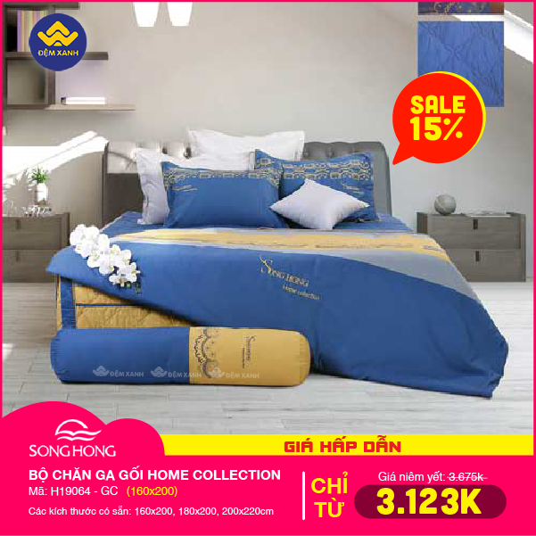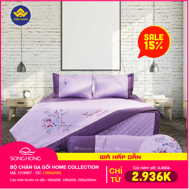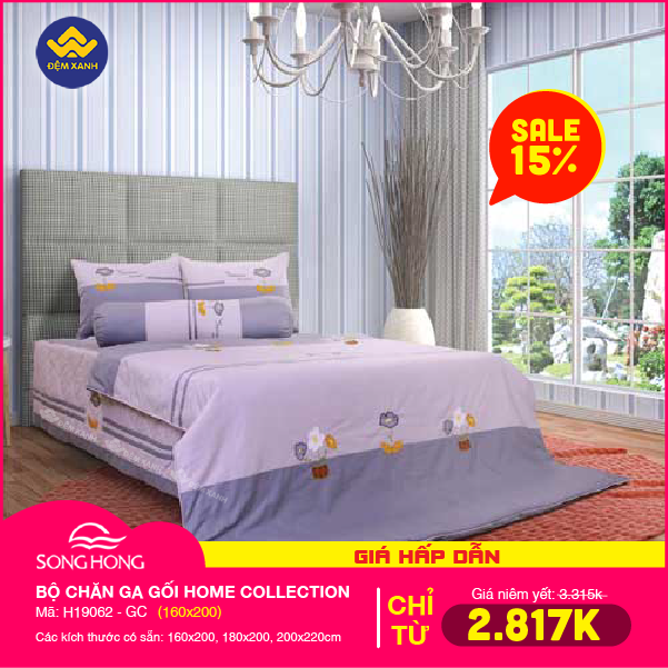 15.Bộ chăn ga gối Sông hồng Home H17050(Ga chun)