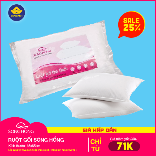 1. Ruột gối Sông hồng 45x65cm giá 95K giảm 25% chỉ còn 71K