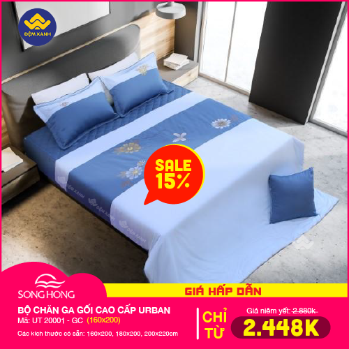 7. Bộ chăn ga gối Sông hồng cao cấp Urban UC20004(Ga chun)