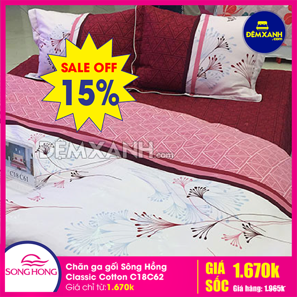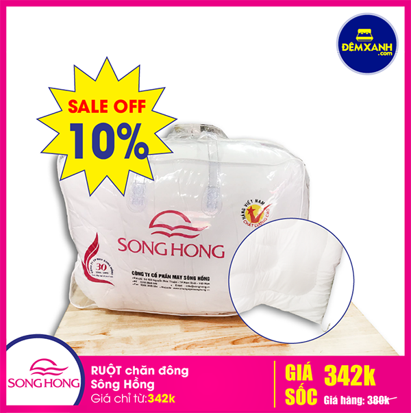 Giấc ngủ chiếm 1/3 cuộc đời mỗi con người, để có được giấc ngủ ngon và sâu giấc hơn sau một ngày làm việc vất vả thì bộ chăn ga gối đệm là sản phẩm không thể thiếu trong căn phòng của mỗi gia đình. Với tiêu chí đặt chất lượng sản phẩm lên hàng đầu, chăn ga gối Sông Hồng luôn mong muốn sản phẩm của họ mang lại sự tiện ích, hài lòng của khách hàng hơn nữa là an toàn sức khỏe cho người tiêu dùng đặc biệt là trẻ nhỏ. Nhằm tri ân khách hàng đã tin tưởng và ủng hộ chúng tôi trong thời gian qua, Sông hồng giảm giá toàn bộ chăn ga gối giá cực sốc, vỏ gối Sông hồng giá chỉ 39K và còn rất nhiều sản phẩm giá ưu đãi, nhanh chân đến cơ sở gần nhất chọn mua bạn nhé!