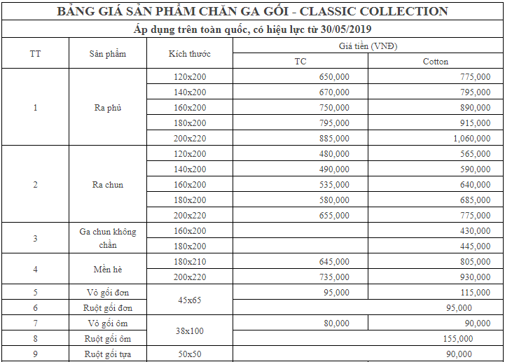 Đến với bộ chăn ga gối chính hãng này bạn có thể tìm được mẫu mã thích hợp, đặc biệt giá thành hợp lý, phù hợp với điều kiện kinh tế của nhiều gia đình Việt. Quý khách hàng có thể tìm được nhiều mẫu mã chăn ga gối mang thương hiệu chính hãng với mức giá hợp lý. Dòng Classic với nhiều mẫu mã khác nhau cho bạn lựa chọn vì thế bạn có thể thoải mái phối màu cho không gian phòng ngủ của mình.