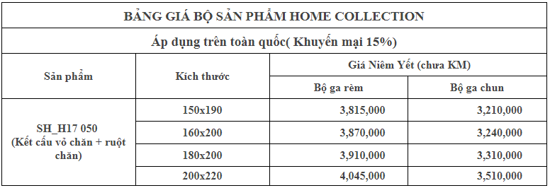 + Bộ chăn ga gối Home Collection mã H17-051