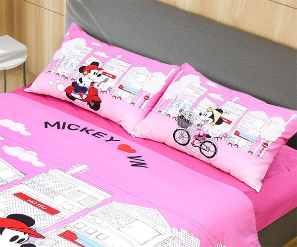 Bộ chăn ga gối Sông Hồng YC20003 được thiết kể tỉ mỉ từng đường may, họa tiết in hình những chú chuột mickey đạp xe thật đáng yêu và năng động
