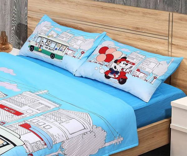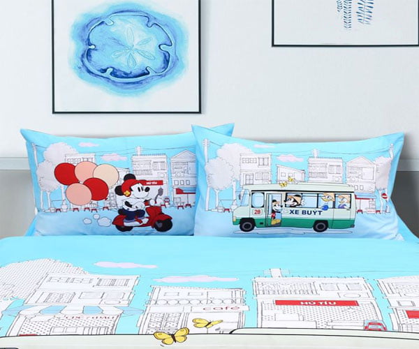 Chăn ga gối Sông Hồng Youth YC20005 với tông màu xanh tươi tắn, nhã nhặn nhưng vẫn thật sôi động và ngộ nghĩnh bởi họa tiết in hình xe bus- chiếc xe mà bé nào cũng thích
