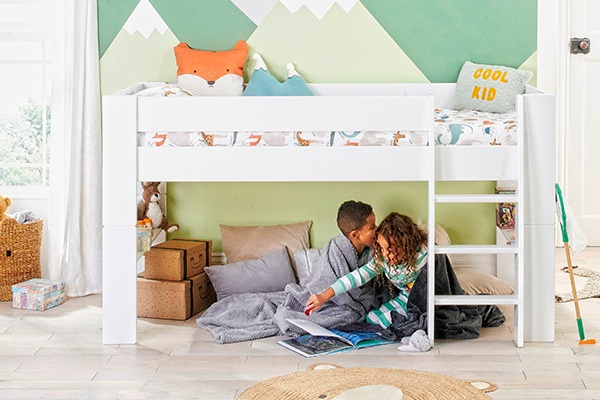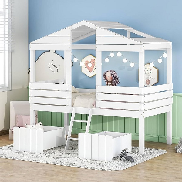 Ngoài ra, chiều cao giường rất đa dạng nên cả trẻ nhỏ và trẻ lớn đều cảm thấy thoải mái. Một số nhà sản xuất gọi chúng là giường giữa vì chiều cao nằm giữa giường đơn và giường tầng. Thang cố định giúp trẻ leo lên cabin cao hơn.