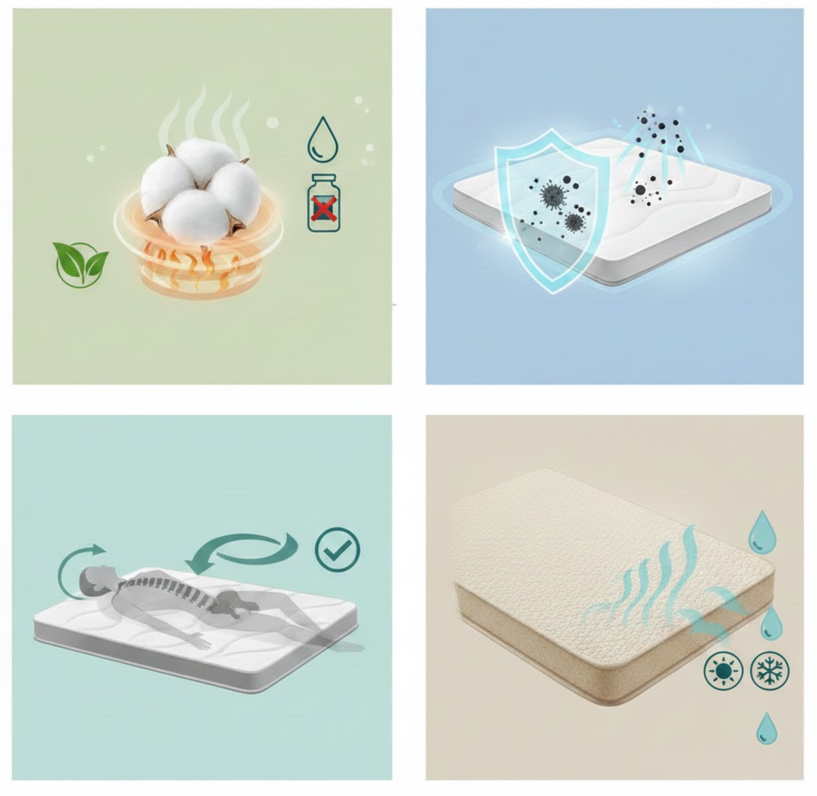Với công nghệ kháng khuẩn vượt trội, các sợi bông được xử lý để ngăn chặn sự ký sinh của vi khuẩn và nấm mốc. Đây chính là "điểm cộng" cực lớn cho người dân tại Huế, nơi mà tình trạng nồm ẩm hay mưa dầm thường xuyên gây mùi khó chịu trên chăn nệm thông thường.