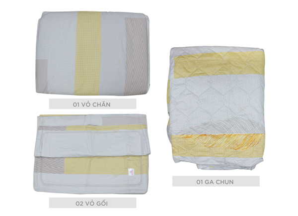 - 01 ga phủ theo kích thước - 02 vỏ gối đầu 45x65cm |