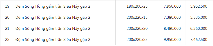 Các loại đệm sông Hồng được bán với giá cả hợp lý. Bạn chỉ cần hơn 1 triệu đồng đã sở hữu ngay sản phẩm chất lượng. Giờ thì bạn đã trả lời được có nên mua đệm sông hồng rồi nhé.