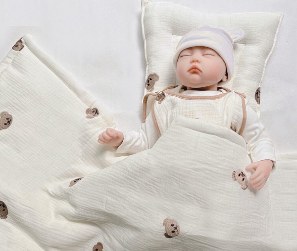 Ngoài ra, ba mẹ cần chú ý nên tránh chọn chăn có chất liệu tổng hợp như polyester hoặc lông dày vì có thể gây nóng và bí bách.