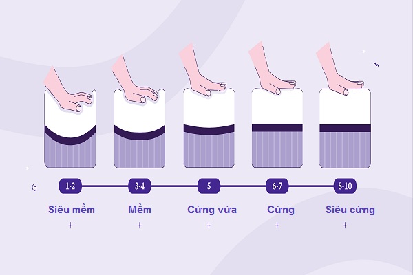Thang đo độ cứng mềm là cách nhà sản xuất cho người mua biết nên nệm cứng hay mềm trước khi mua. Thang điểm chạy từ 1-10, trong đó 10 là chắc chắn nhất.