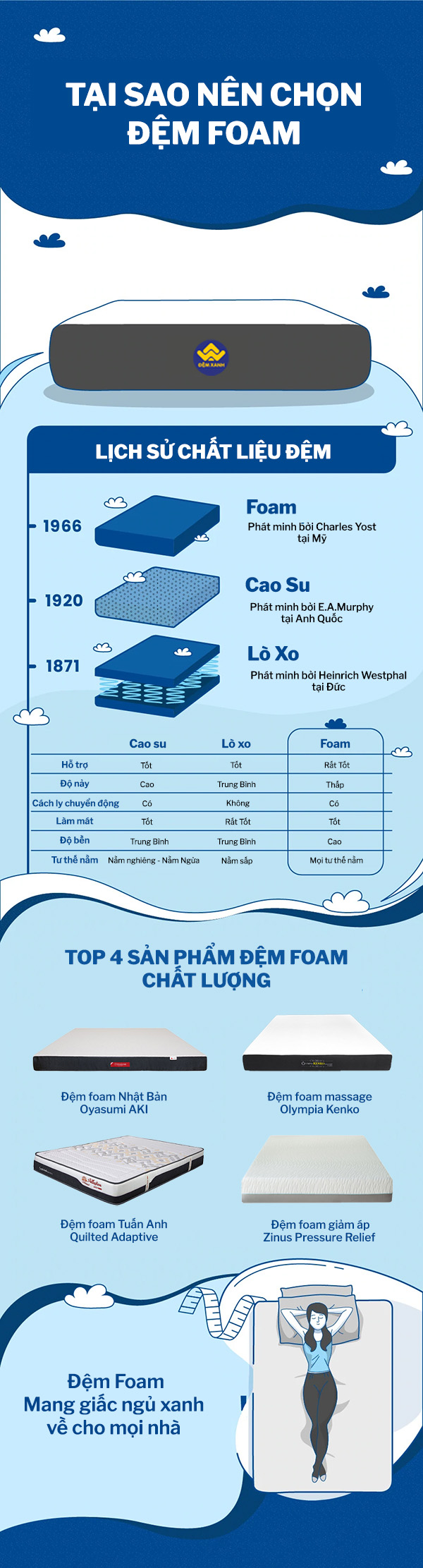 Trên thị trường đệm hiện nay, có khá nhiều chất liệu cao cấp để bạn lựa chọn. Nhưng đệm foam sẽ là một sẽ là một gợi ý không tồi để bạn chăm sóc giấc ngủ của mình.