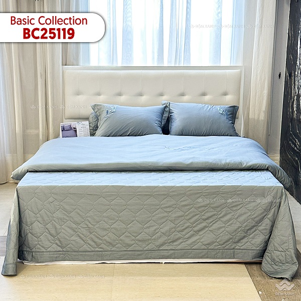 Bộ chăn ga gối BC25119 được thiết kế theo phong cách tối giản hiện đại với gam màu xám thời thượng cùng họa tiết nhanh hoa kết hợp dòng chữ “Basic Collection” được thêu đầy mềm mại, uyển chuyển. Sắc xám trung tính, nhã nhặn và đặc biệt rất hợp với người mệnh Kim, giúp cân bằng năng lượng và mang lại sự an yên trong phong thủy.