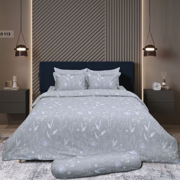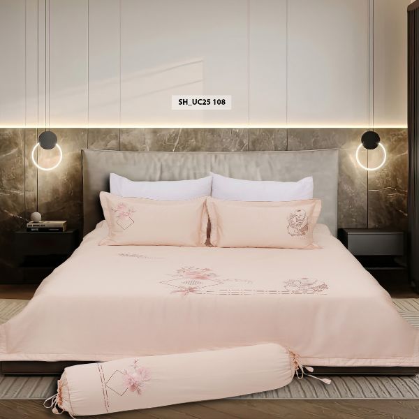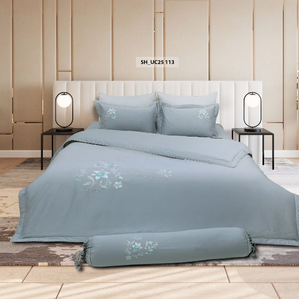 UC25113 ghi điểm với tông màu xám nhã nhặn dễ dàng kết hợp với nhiều phong cách nội thất khác nhau. Điểm nhấn chính là họa tiết hoa bách hợp thêu tỉ mỉ, tô điểm cho không gian phòng ngủ thêm thuần khiết và bình an.