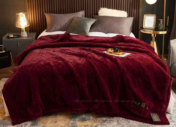 Chăn lông cáo Đại Hàn nhập khẩu nặng 6kg màu đỏ đô