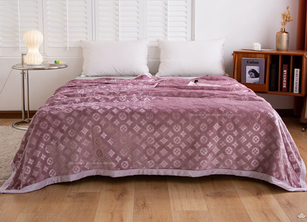 Sắc tím của của chăn là tông màu hoa oải hương nhẹ nhàng vừa thời thượng vừa dễ phối. Họa tiết trên chăn là logo thương hiệu sang trọng in chìm vừa thời thượng vừa bắt mắt.