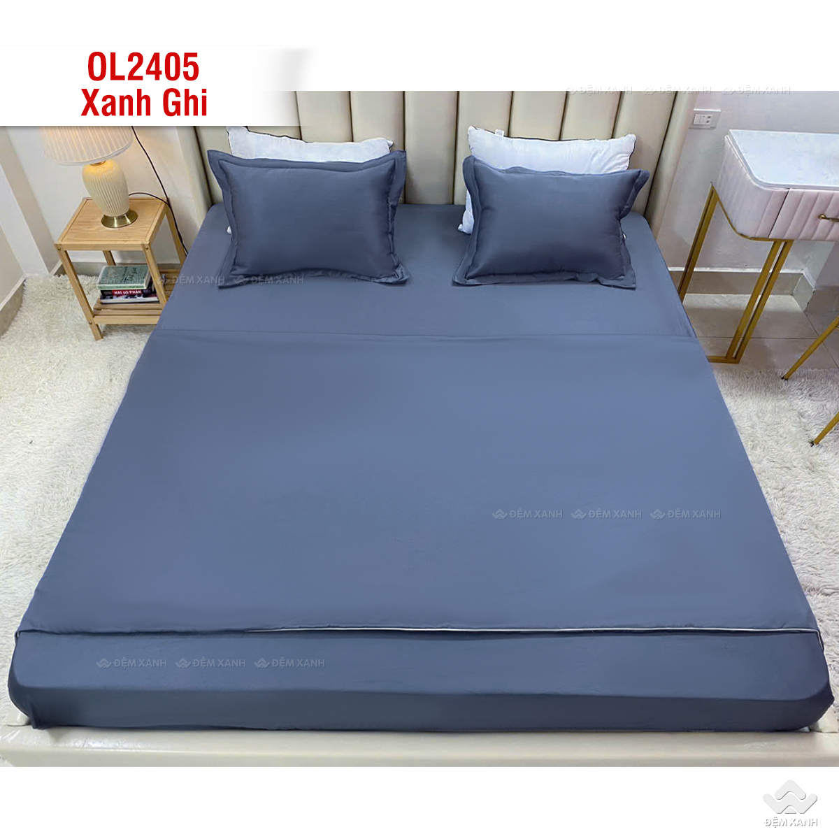 Chăn ga gối chun Olympia Lucas OL2402 màu xanh ghi