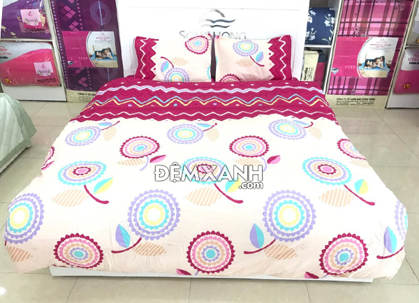 Có mẫu chăn xuân thu Sông Hồng Basic cotton gây ấn tượng bởi tông màu hồng tím bắt mắt kết hợp cùng những bông hoa cúc màu trắng nhẹ nhàng, tươi mới cho một không gian phòng ngủ thật nổi bật.